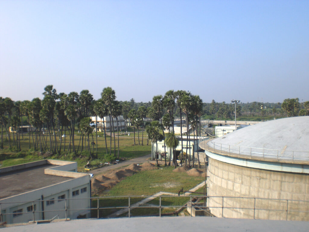 The Kodungaiyur WWTP, located in northern Chennai, is an environmentally-friendly sewage treatment plant that handles 110 MLD of municipal wastewater. Utilizing the conventional activated sludge process, anaerobic sludge digestion, and biogas utilization for energy production, the plant achieves 98% energy self-sufficiency. Biogas generated from sludge digestion is used to power the plant, making it one of the most energy-efficient wastewater treatment facilities in Chennai.